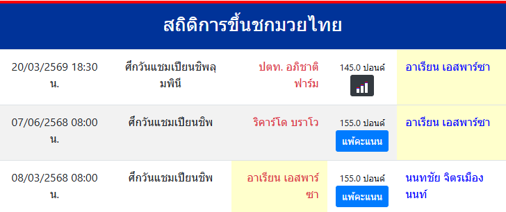 | ขึ้นชกล่าสุด | 7/6/2568 (9 เดือน 12 วัน) |