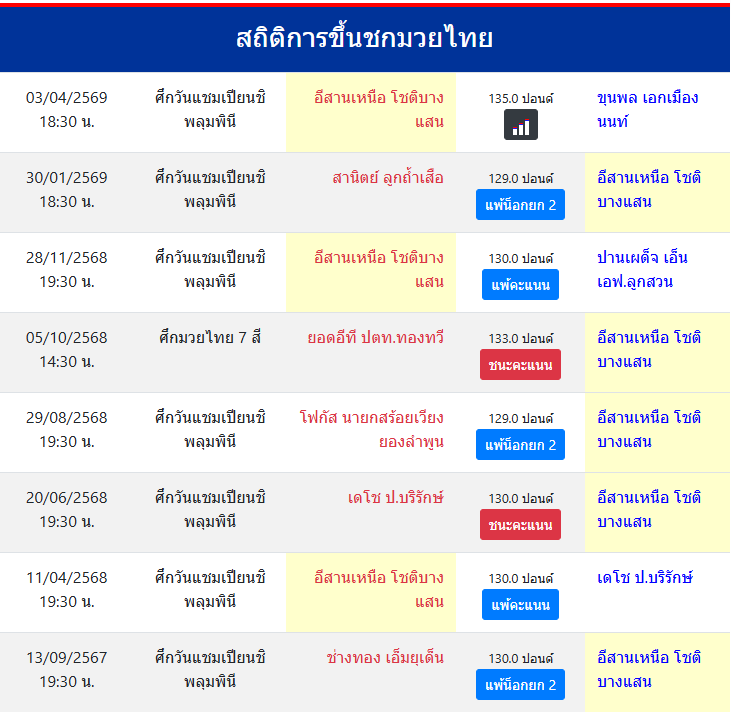 | ขึ้นชกล่าสุด | 30/1/2569 (2 เดือน 3 วัน) |