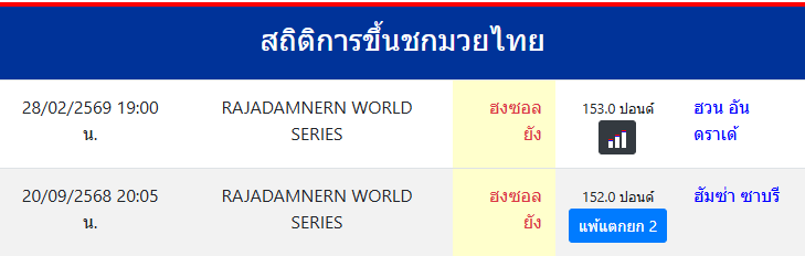 ฮงซอล ยัง "ฮงซอล ยัง" ประเทศ 🇹🇭 ไทย ลีก Muay Thai 0 ชนะ 0 แพ้ 0 เสมอ 0 KO/TKO ประวัติและชีวประวัติ สถิติการขึ้นชกมวยไทยฮงซอล ยัง ขึ้นชกล่าสุด20/9/2568(5 เดือน 6 วัน)