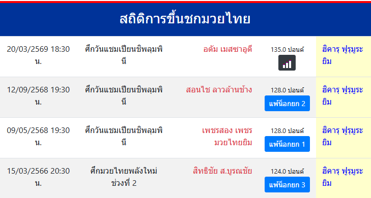 | ขึ้นชกล่าสุด | 12/9/2568 (6 เดือน 7 วัน) |
