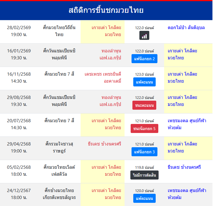 สถิติการขึ้นชกมวยไทย