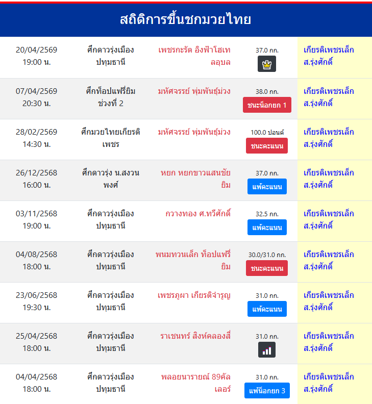 | ขึ้นชกล่าสุด | 7/4/2569 (13 วัน) |