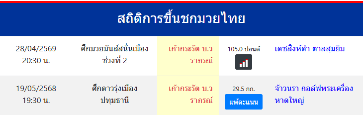 | ขึ้นชกล่าสุด | 19/11/2568 (5 เดือน 7 วัน) |