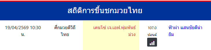 เคนโซ่ เจ.เอฟ.พุ่มพันธ์ม่วง "เคนโซ่ เจ.เอฟ.พุ่มพันธ์ม่วง" ประเทศ 🇹🇭 ไทย ลีก Muay Thai 0 ชนะ 0 แพ้ 0 เสมอ 0 KO/TKO ประวัติและชีวประวัติ สถิติการขึ้นชกมวยไทยเคนโซ่ เจ.เอฟ.พุ่มพันธ์ม่วง