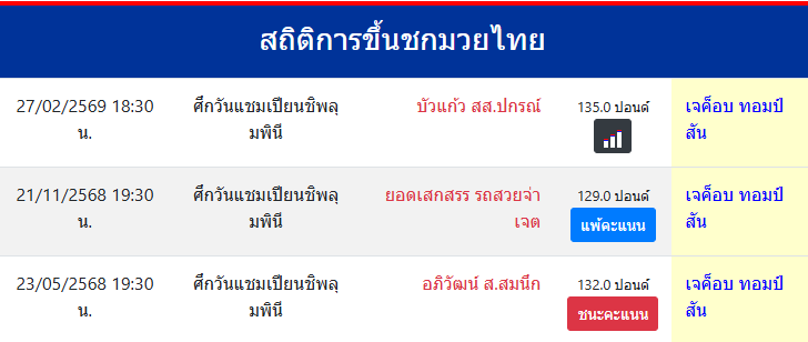 | ขึ้นชกล่าสุด | 21/11/2568 (3 เดือน 5 วัน) |