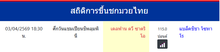 เดลฟาน ดวี ซาตริโอ "เดลฟาน ดวี ซาตริโอ" ประเทศ 🇹🇭 ไทย ลีก Muay Thai 0 ชนะ 0 แพ้ 0 เสมอ 0 KO/TKO ประวัติและชีวประวัติ สถิติการขึ้นชกมวยไทยเดลฟาน ดวี ซาตริโอ
