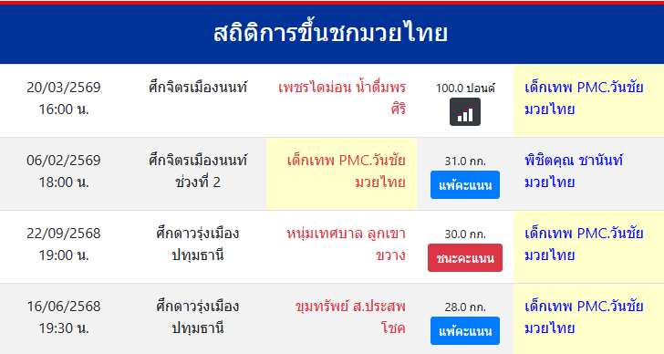 | ขึ้นชกล่าสุด | 22/2/2569 (25 วัน) |
