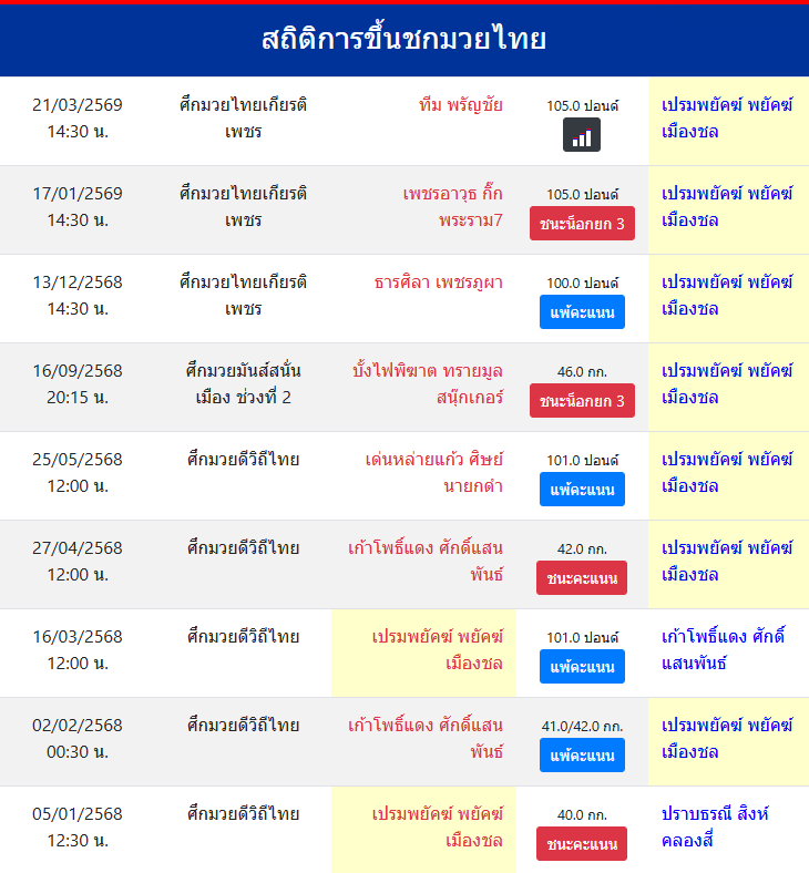 | ขึ้นชกล่าสุด | 17/1/2569 (2 เดือน 2 วัน) |