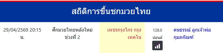 เพชรกรุงไกร กรุงเทคโน "เพชรกรุงไกร กรุงเทคโน" ประเทศ 🇹🇭 ไทย ลีก Muay Thai 0 ชนะ 0 แพ้ 0 เสมอ 0 KO/TKO ประวัติและชีวประวัติ สถิติการขึ้นชกมวยไทยเพชรกรุงไกร กรุงเทคโน