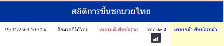 เพชรกล้า ศิษย์ครูกล้า "เพชรกล้า ศิษย์ครูกล้า" ประเทศ 🇹🇭 ไทย ลีก Muay Thai 0 ชนะ 0 แพ้ 0 เสมอ 0 KO/TKO ประวัติและชีวประวัติ สถิติการขึ้นชกมวยไทยเพชรกล้า ศิษย์ครูกล้า