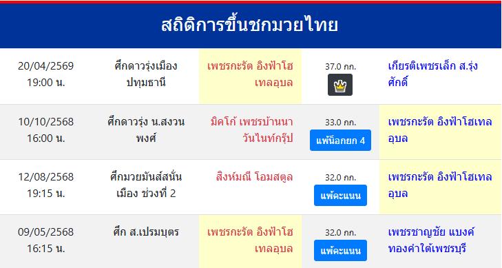 สถิติการขึ้นชกมวยไทย