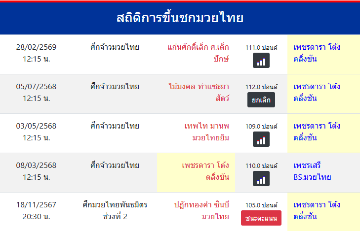 | ขึ้นชกล่าสุด | 5/7/2568 (7 เดือน 21 วัน) |