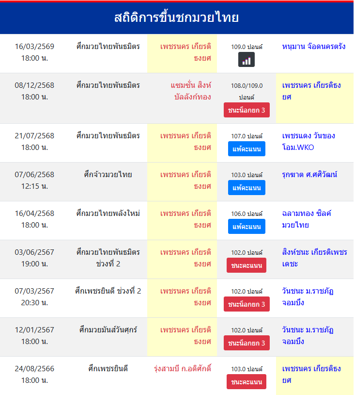 | ขึ้นชกล่าสุด | 8/12/2568 (3 เดือน 6 วัน) |