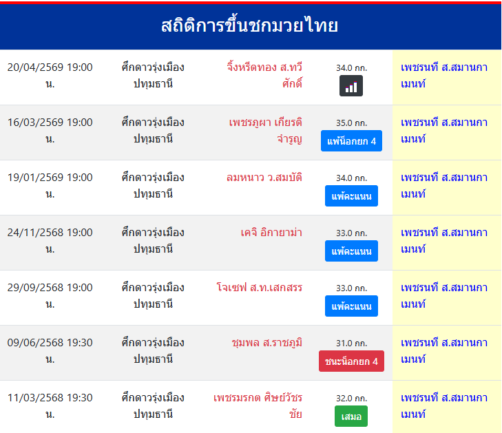 | ขึ้นชกล่าสุด | 27/3/2569 (24 วัน) |