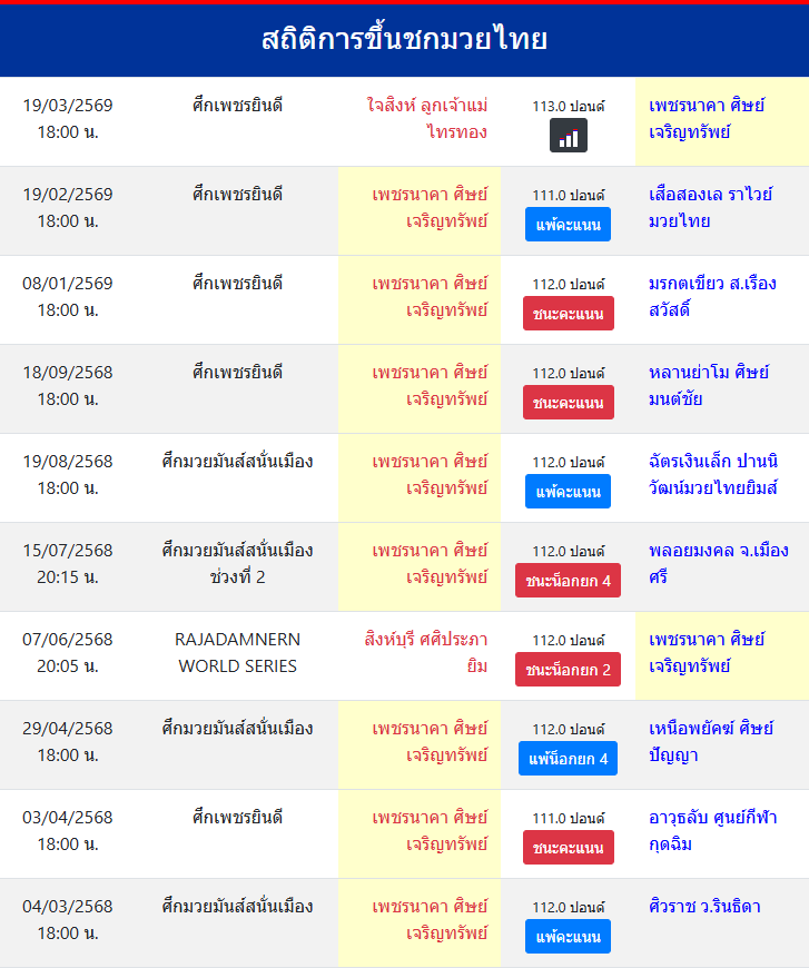 | ขึ้นชกล่าสุด | 19/2/2569 (1 เดือน ) |