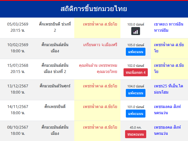 สถิติการขึ้นชกมวยไทย