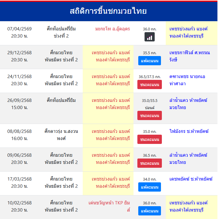 | ขึ้นชกล่าสุด | 29/12/2568 (3 เดือน 7 วัน) |