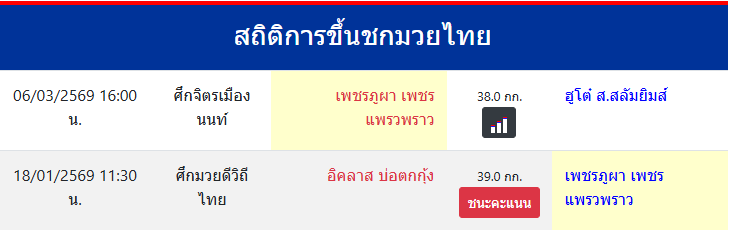 | ขึ้นชกล่าสุด | 1/2/2569 (1 เดือน 3 วัน) |