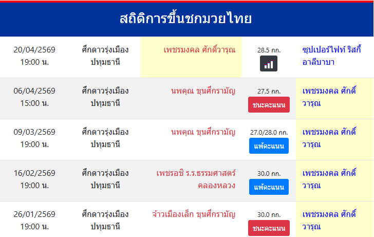 | ขึ้นชกล่าสุด | 6/4/2569 (14 วัน) |