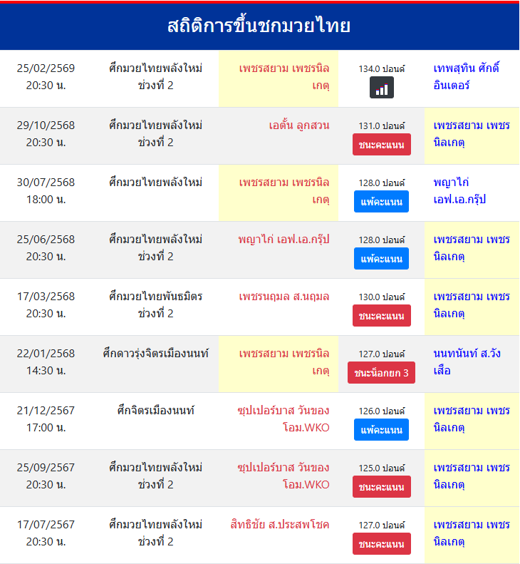 | ขึ้นชกล่าสุด | 29/10/2568 (3 เดือน 27 วัน) |