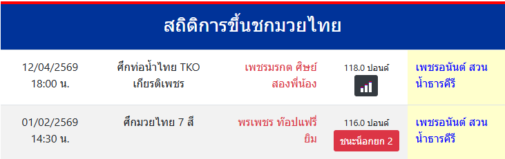 สถิติการขึ้นชกมวยไทย