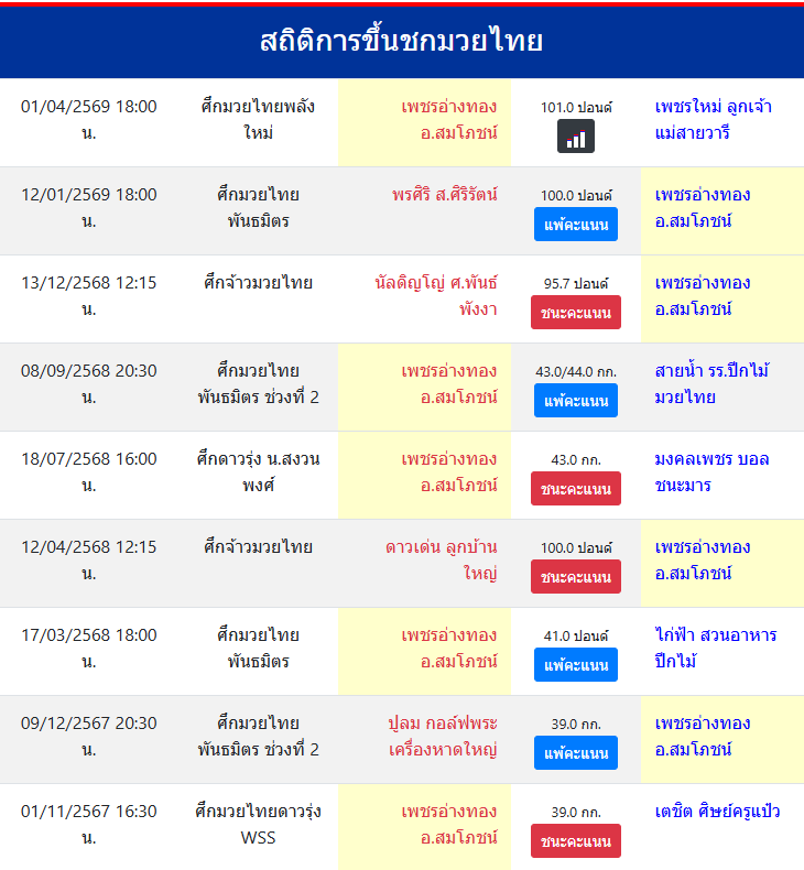 | ขึ้นชกล่าสุด | 12/1/2569 (2 เดือน 20 วัน) |