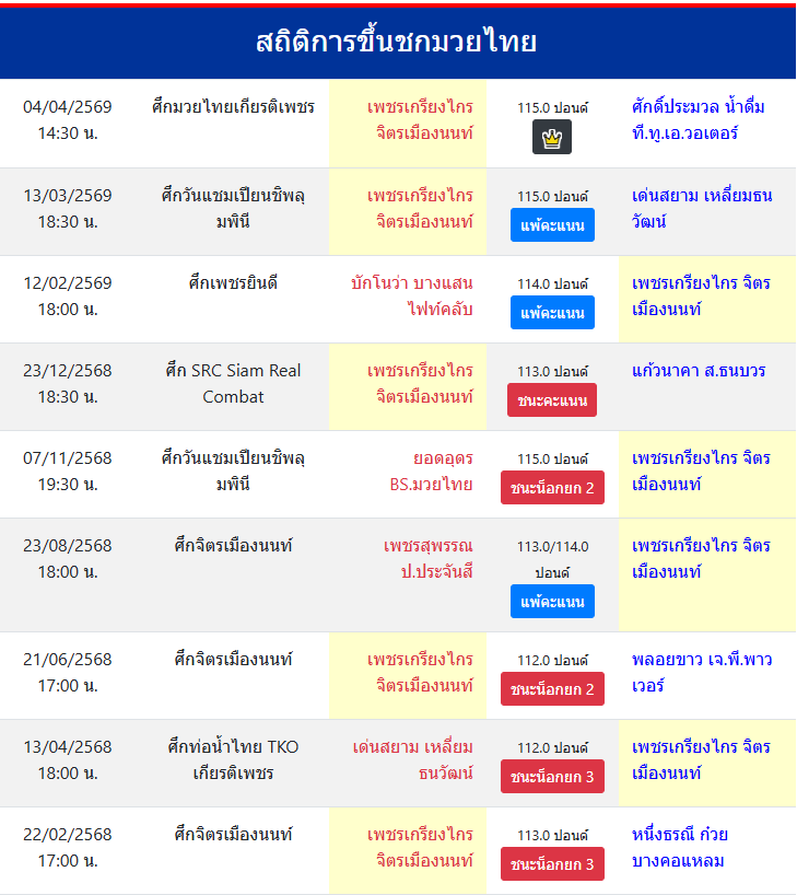 | ขึ้นชกล่าสุด | 13/3/2569 (21 วัน) |