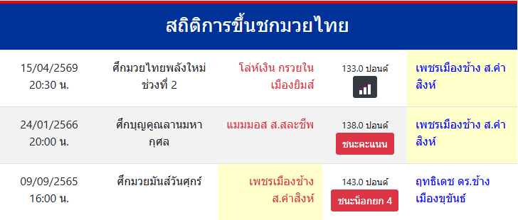 | ชกมาแล้ว | ≥ 30 ครั้ง |