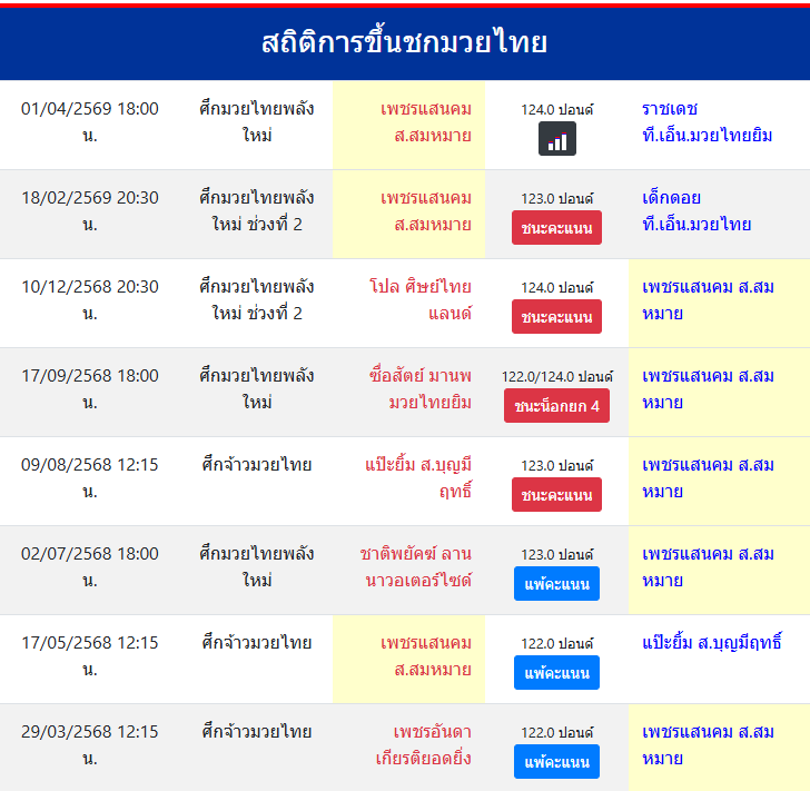 | ขึ้นชกล่าสุด | 18/2/2569 (1 เดือน 14 วัน) |