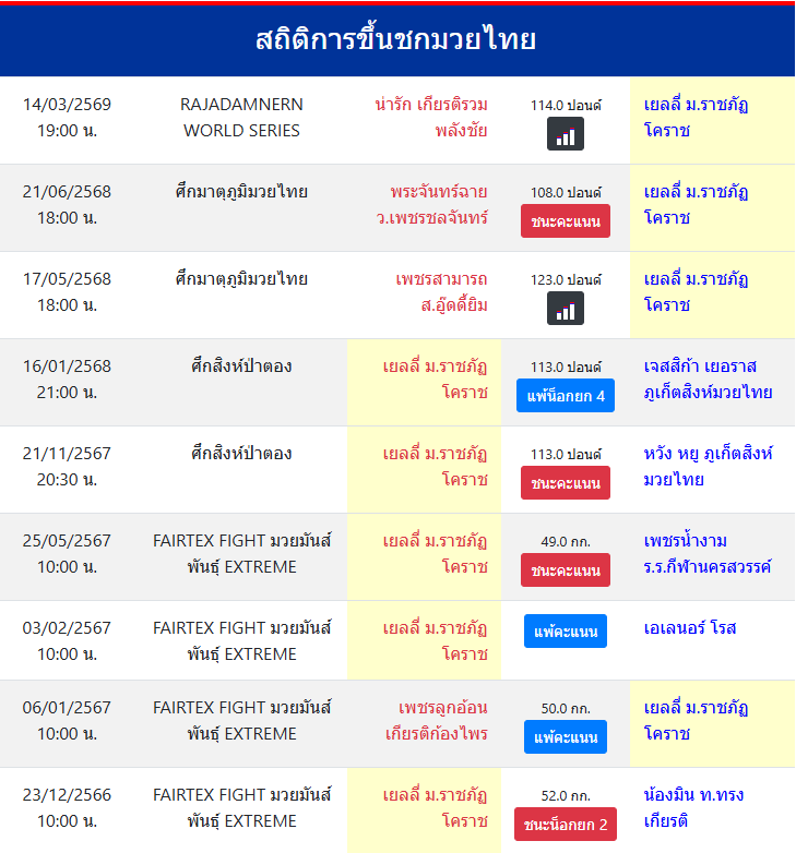 | ขึ้นชกล่าสุด | 21/6/2568 (8 เดือน 18 วัน) |