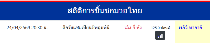 เรอิจิ ทากากิ "เรอิจิ ทากากิ" ประเทศ 🇹🇭 ไทย ลีก Muay Thai 0 ชนะ 0 แพ้ 0 เสมอ 0 KO/TKO ประวัติและชีวประวัติ สถิติการขึ้นชกมวยไทยเรอิจิ ทากากิ