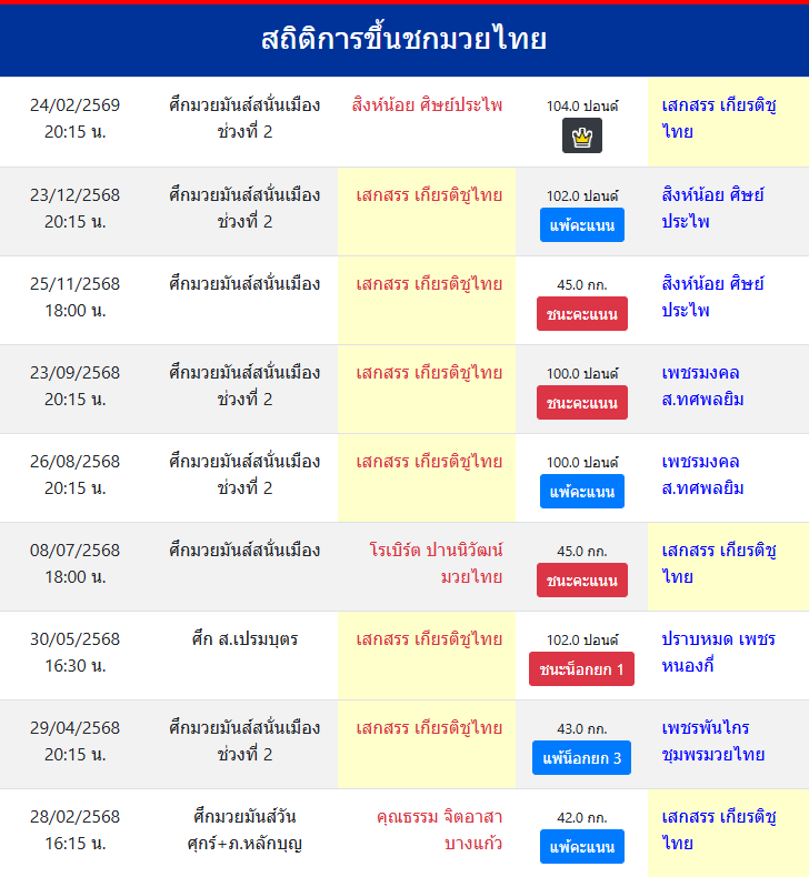 | ขึ้นชกล่าสุด | 23/12/2568 (2 เดือน 1 วัน) |