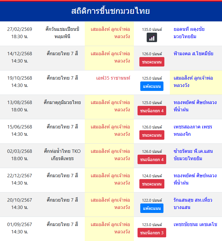 สถิติการขึ้นชกมวยไทย