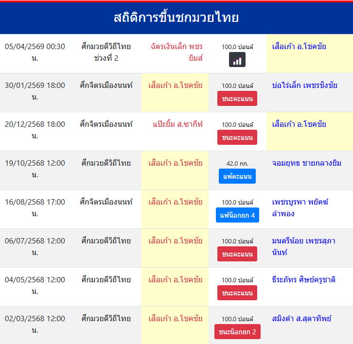 สถิติการขึ้นชกมวยไทย