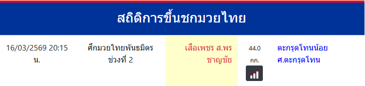 เสือเพชร ส.พรชาญชัย "เสือเพชร ส.พรชาญชัย" ประเทศ 🇹🇭 ไทย ลีก Muay Thai 0 ชนะ 0 แพ้ 0 เสมอ 0 KO/TKO ประวัติและชีวประวัติ สถิติการขึ้นชกมวยไทยเสือเพชร ส.พรชาญชัย จังหวัดชุมพรซ้อมที่ศ.พรชาญชัย จ.ชุมพร