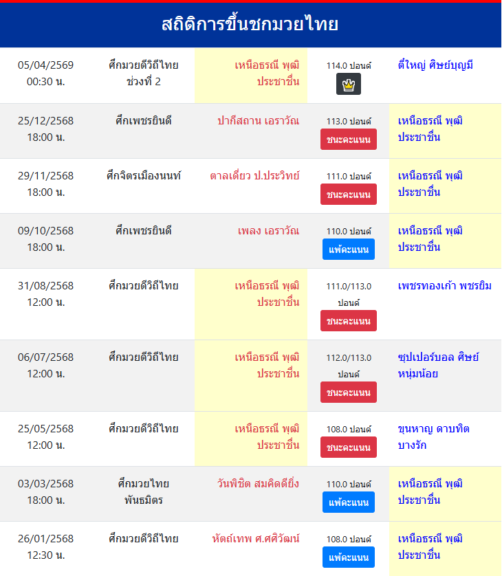 | ขึ้นชกล่าสุด | 25/12/2568 (3 เดือน 10 วัน) |