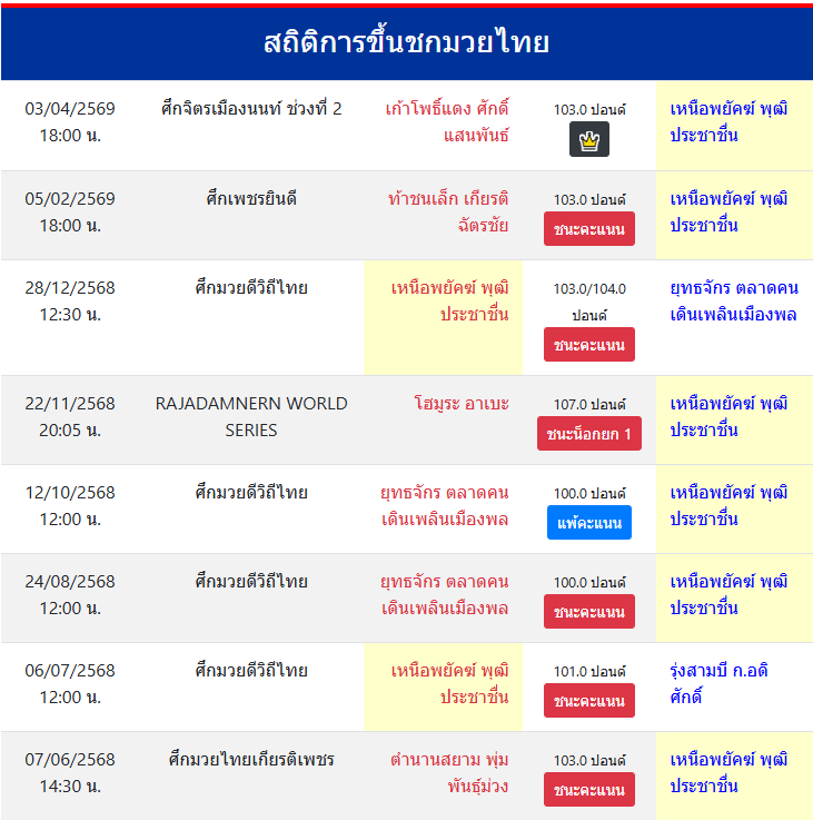 สถิติการขึ้นชกมวยไทย