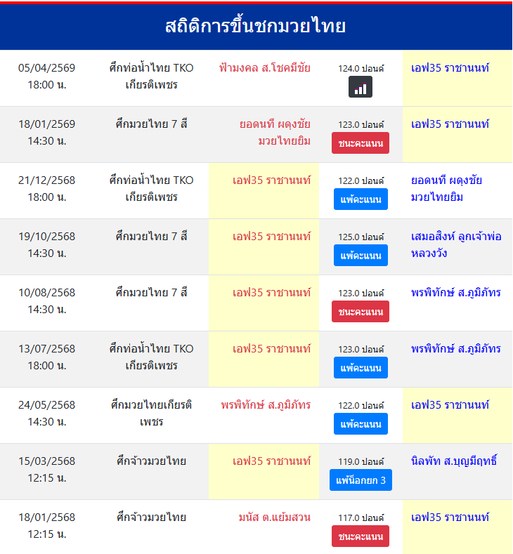 | ขึ้นชกล่าสุด | 18/1/2569 (2 เดือน 17 วัน) |
