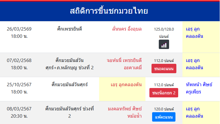 สถิติการขึ้นชกมวยไทย