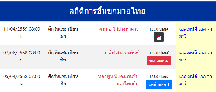 สถิติการขึ้นชกมวยไทย