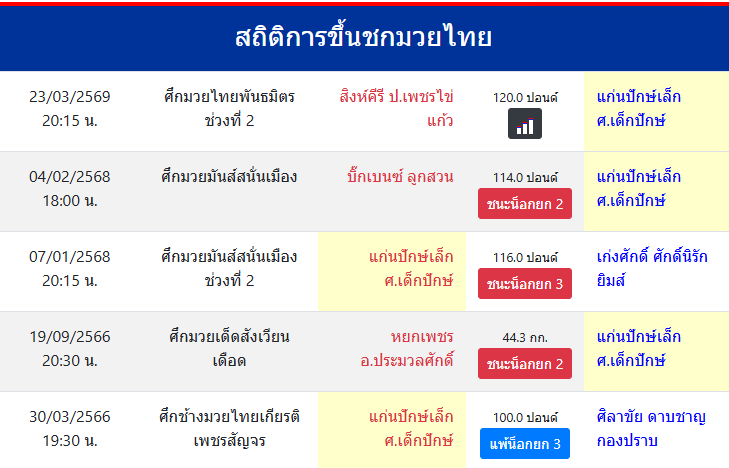 สถิติการขึ้นชกมวยไทย