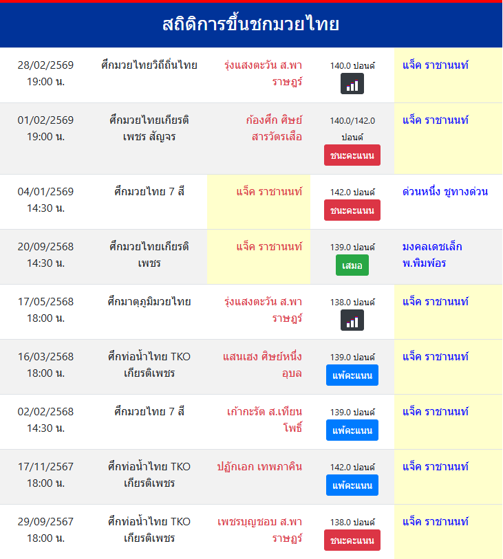 | ขึ้นชกล่าสุด | 1/2/2569 (25 วัน) |