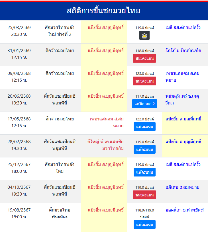 ขึ้นชกล่าสุด31/1/2569