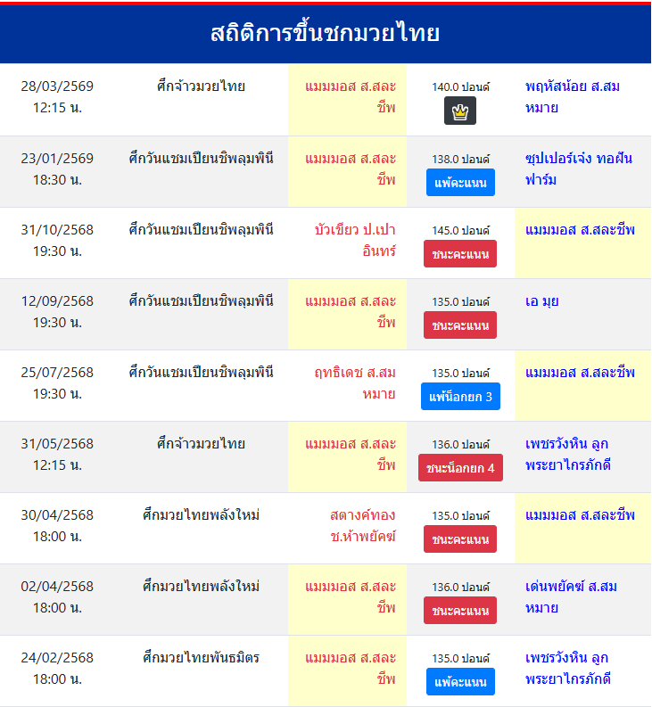 | ขึ้นชกล่าสุด | 23/1/2569 (2 เดือน 2 วัน) |