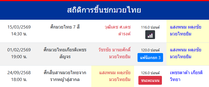 | ขึ้นชกล่าสุด | 1/2/2569 (1 เดือน 13 วัน) |