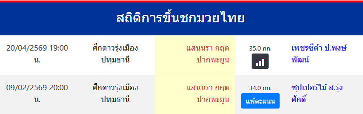 สถิติการขึ้นชกมวยไทย