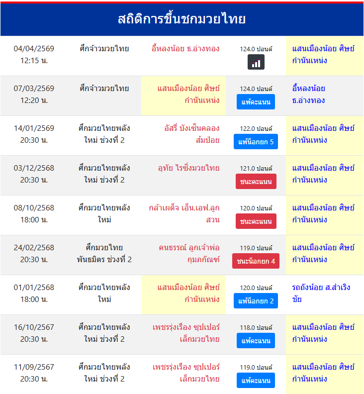 ขึ้นชกล่าสุด7/3/2569