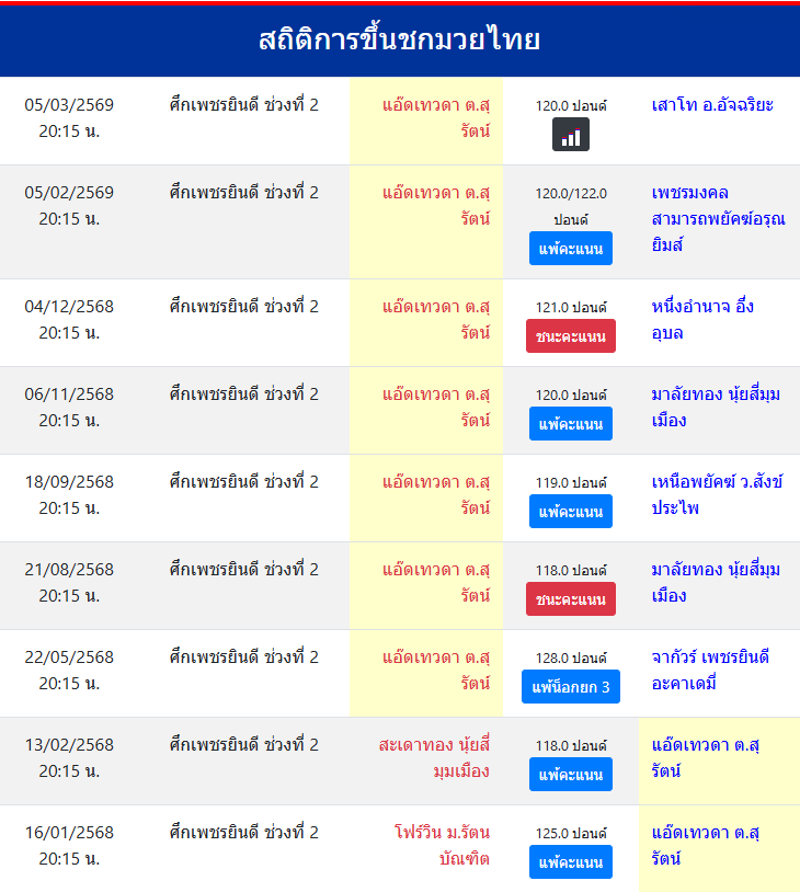 | ขึ้นชกล่าสุด | 5/2/2569 (27 วัน) |