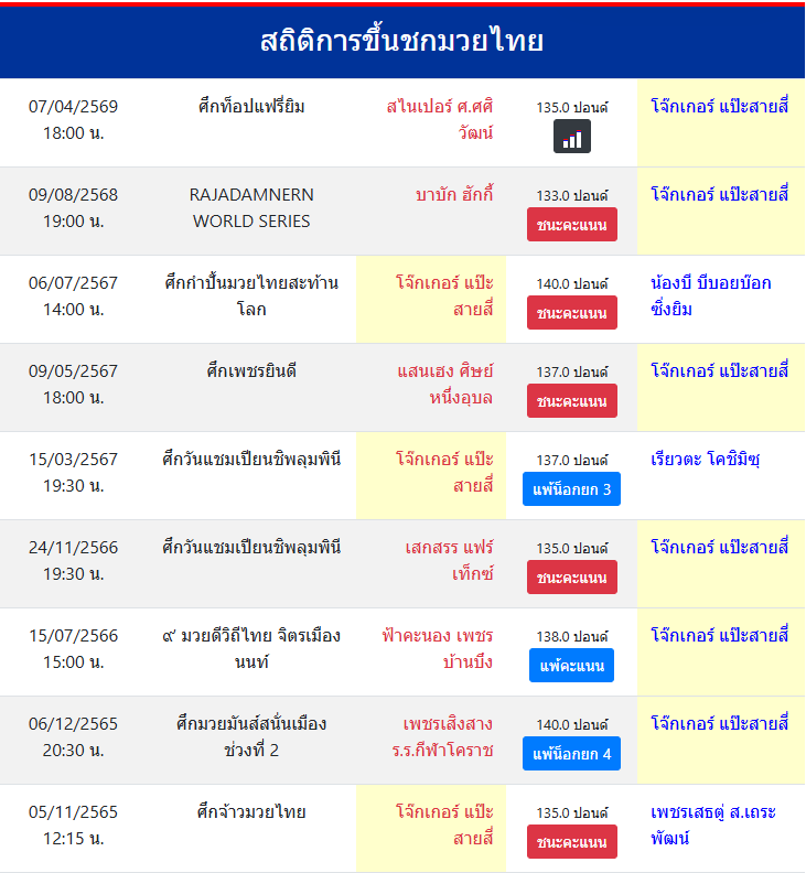 สถิติการขึ้นชกมวยไทย