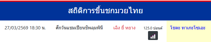 โชตะ ทาเกะโซเอะ "โชตะ ทาเกะโซเอะ" ประเทศ 🇹🇭 ไทย ลีก Muay Thai 0 ชนะ 0 แพ้ 0 เสมอ 0 KO/TKO ประวัติและชีวประวัติ สถิติการขึ้นชกมวยไทยโชตะ ทาเกะโซเอะ